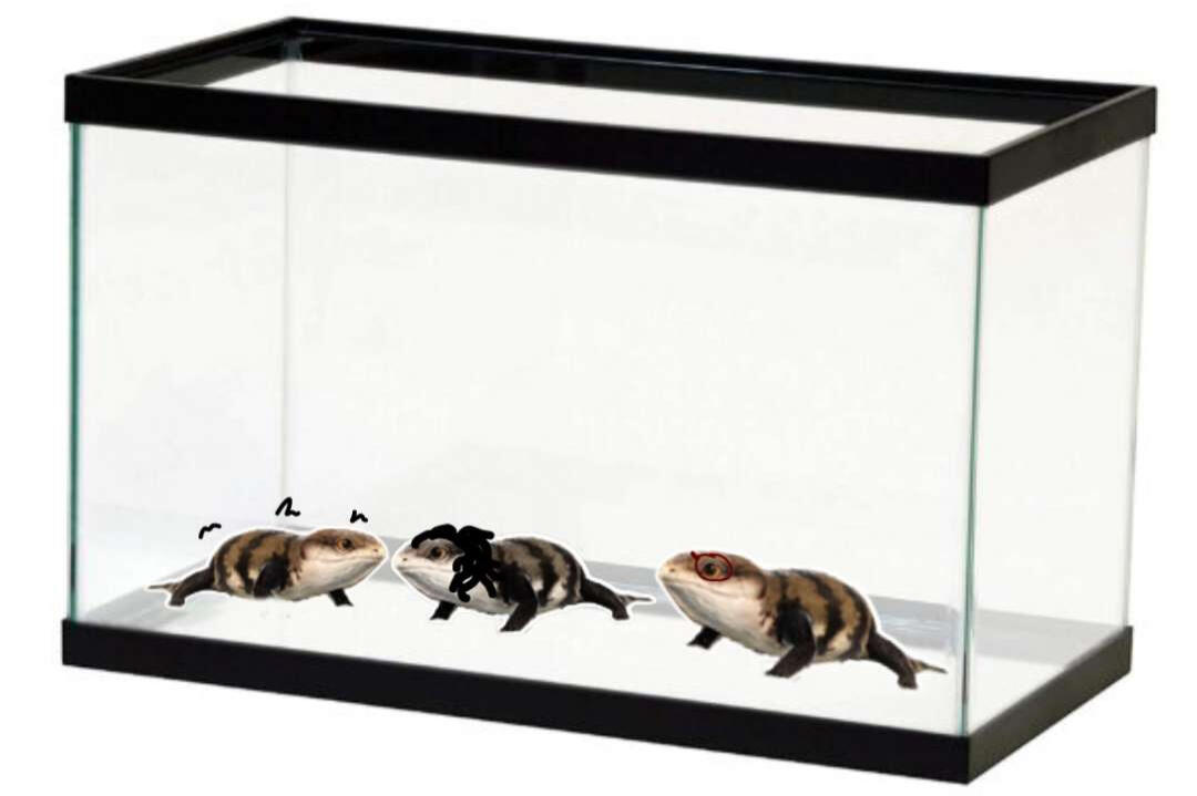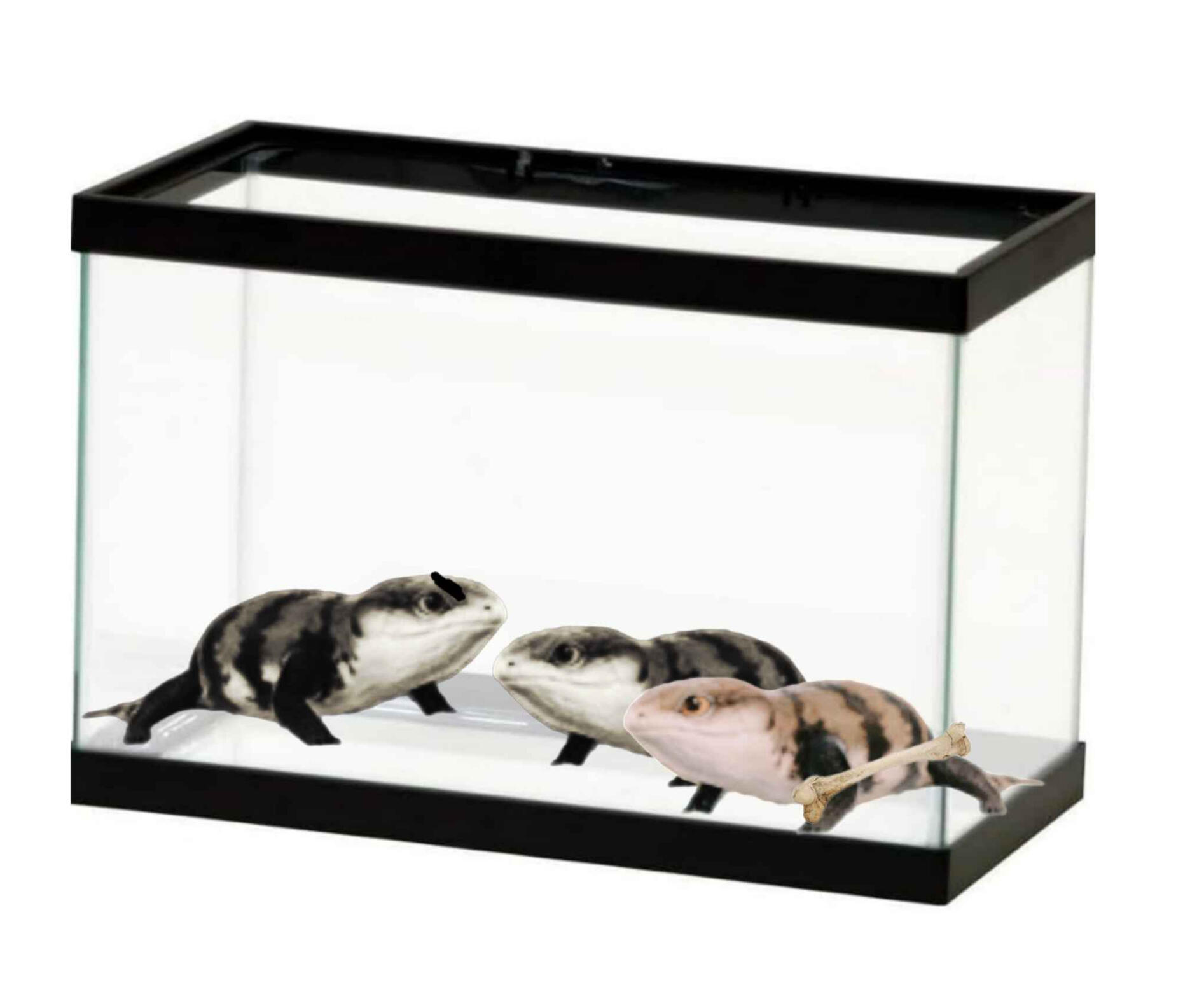 Gecko - A gecko made from the DNA of REDACTED. He seems to be almost pinkish in color and quite smug. Him, along with Geckllie, are calmed by the pile of gil in the corner of the tank.